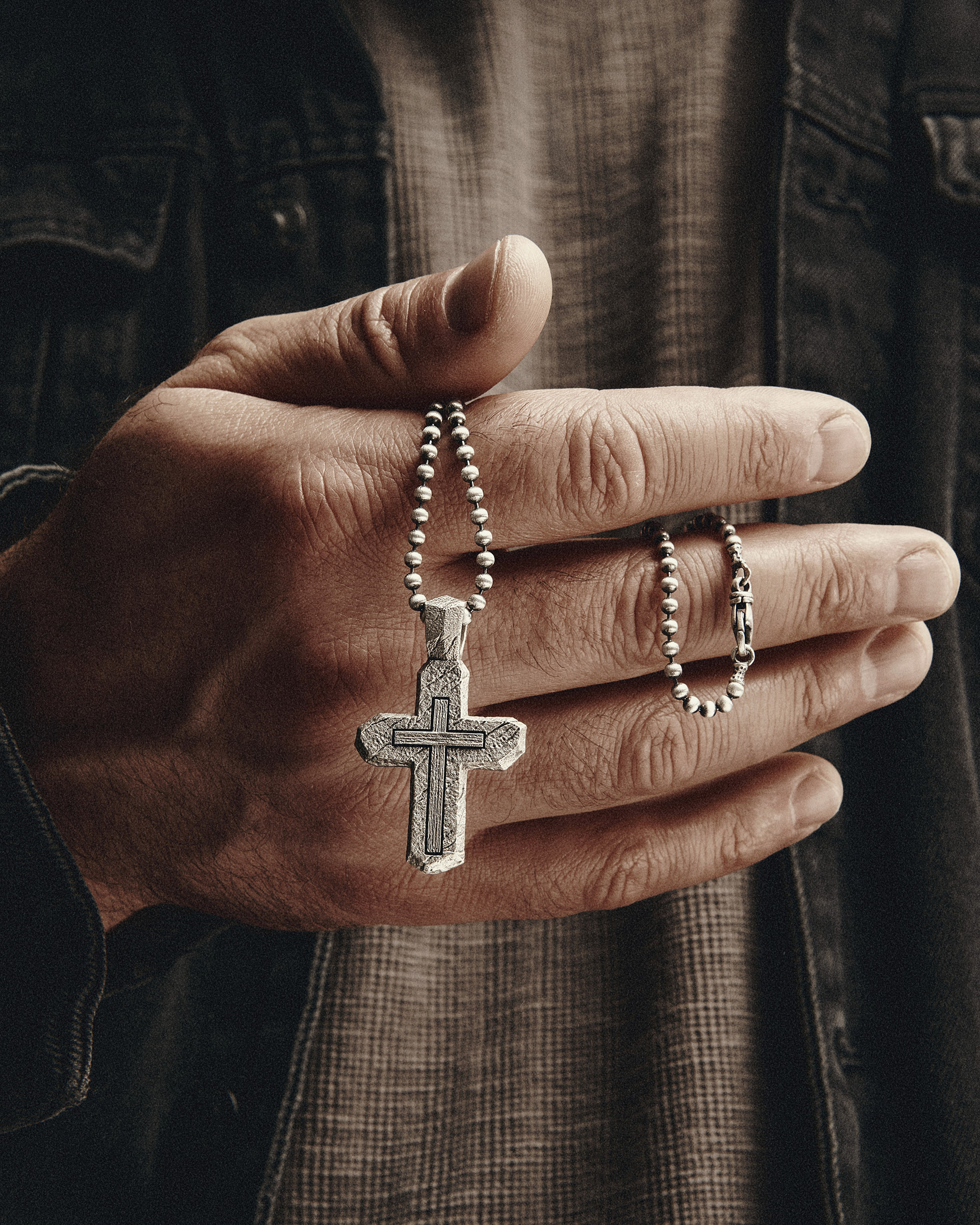 CALVARY CROSS. IN GOD WE TRUST — серебряный крест в массивном текстурном исполнении, созданный для тех, кто ищет в украшении не только эстетику, но и духовную опору. Его форма напоминает высечённый камень — символ веры, выдержавшей время и испытания. Надпись IN GOD WE TRUST («Мы уповаем на Бога») на обороте служит спокойным напоминанием о доверии высшей силе и внутренней стойкости. CALVARY CROSS — личный оберег для мужчины, который ценит традицию, духовный смысл и собственный путь.