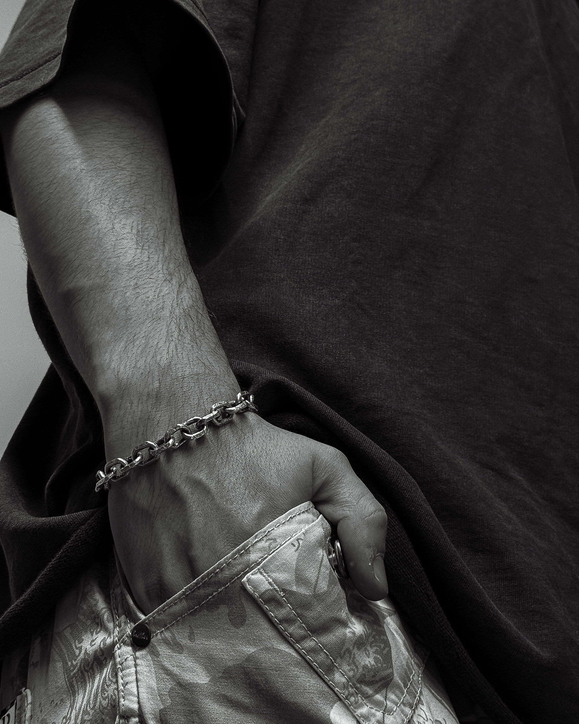 Текстура ланок нагадує сліди часу на металі — як події, що залишаються в середині назавжди, перетворюючи недосконалість на силу.