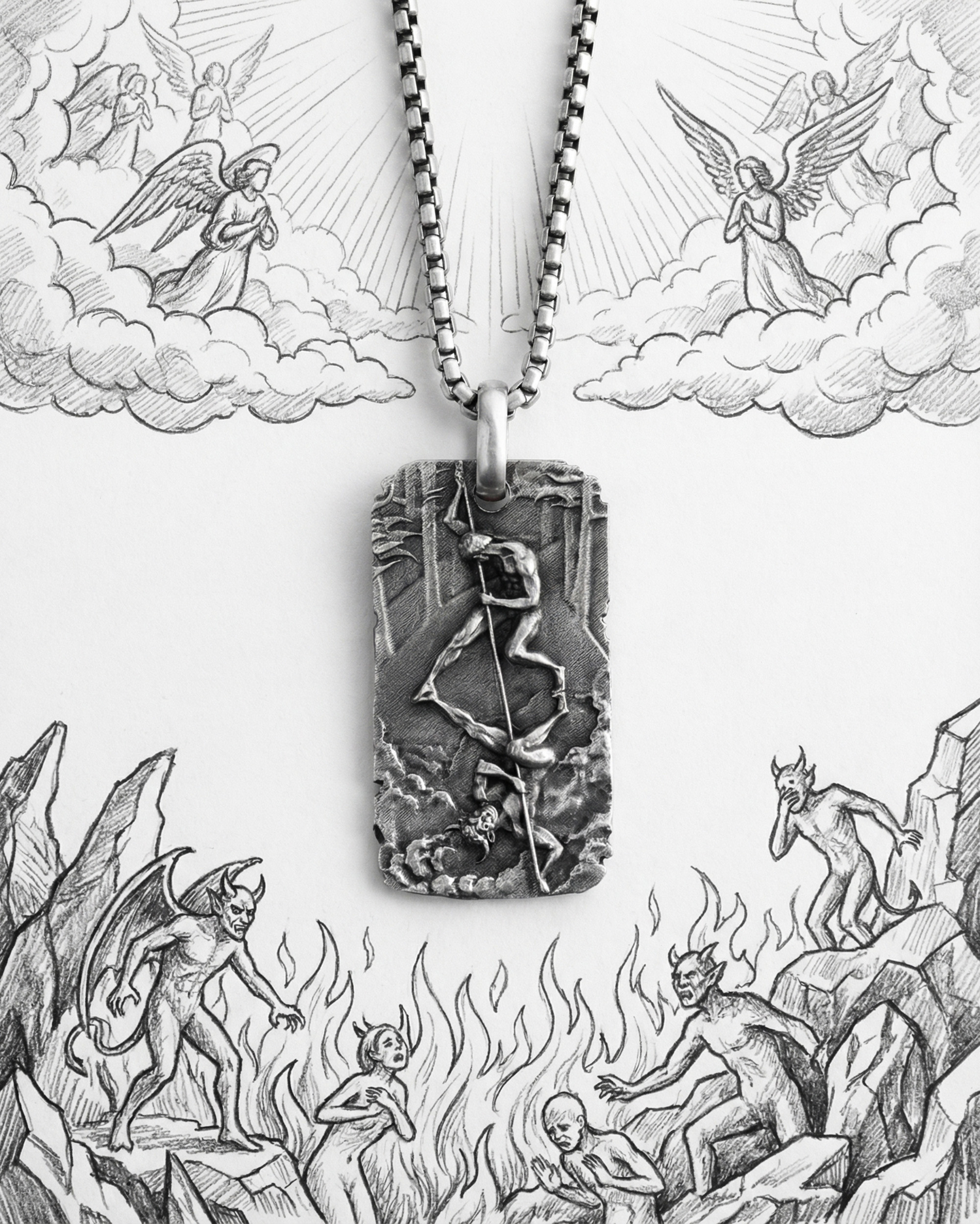 Цей кулон втілює головну сутичку, яку веде кожен — боротьбу з собою. Сюжет — двобій із власною тінню, де супротивник не зовнішній ворог, а внутрішній страх, сумнів чи слабкість.