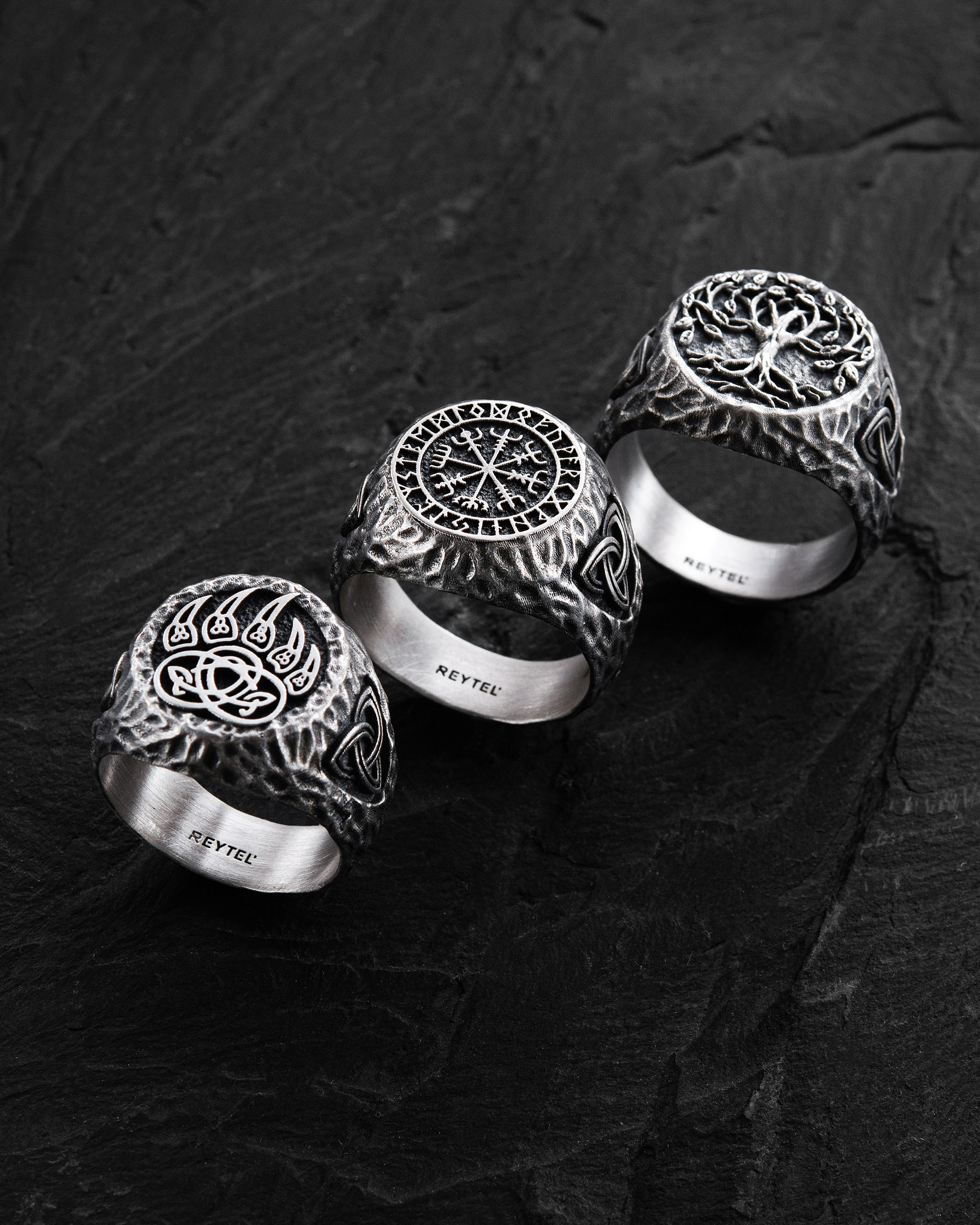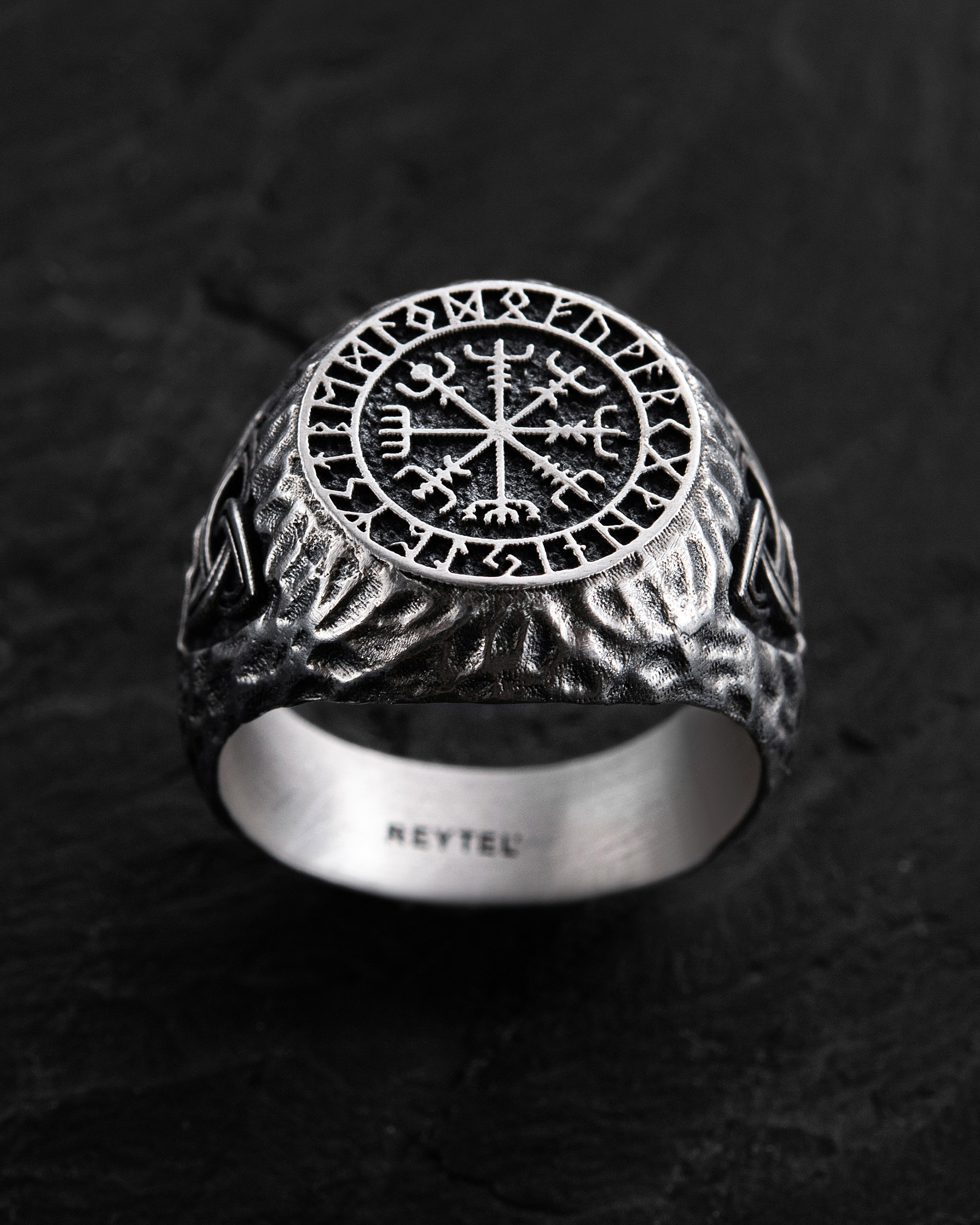 Срібний перстень VEGVISIR. RUNES 3836